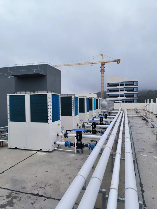 該項(xiàng)目位于廣東韶關(guān),華南裝備園熱水項(xiàng)目。整個(gè)園區(qū)共計(jì)2000多余人,共有2棟職工宿舍。按園區(qū)要求,每一個(gè)宿舍都要滿(mǎn)足充足的熱水供應(yīng),熱水出水溫度最高達(dá)55℃,根據(jù)氣候變化可自由調(diào)節(jié)熱水溫度。